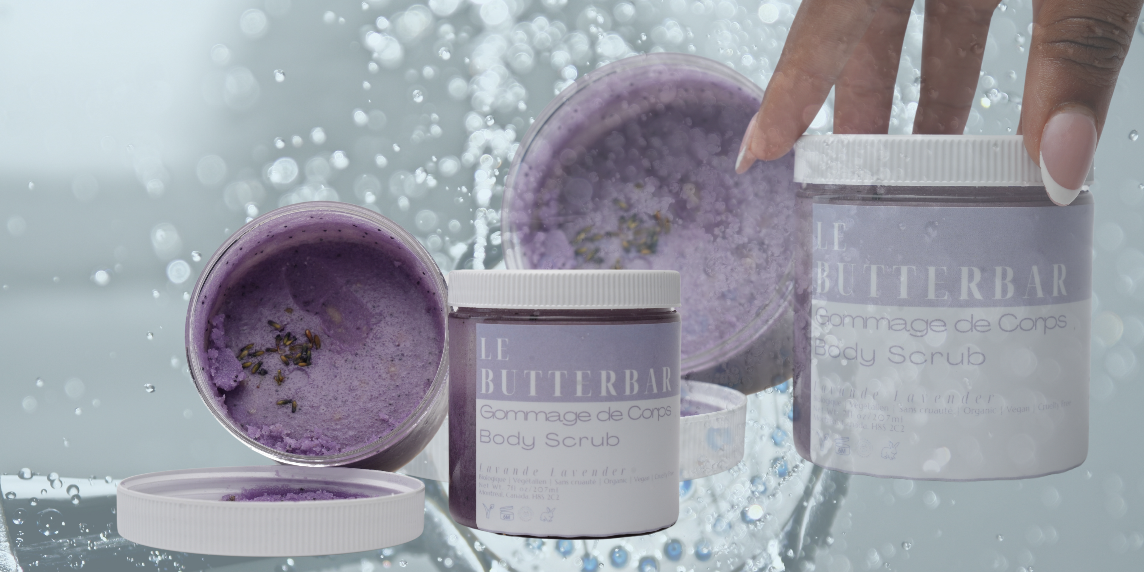 Nos gommages corporels se marient parfaitement avec le beurre corporel fouetté Le Butter Bar après utilisation !